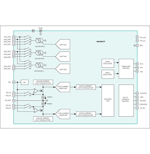 MAX86150: This video provides an introduction to the MAX86150, an integrated electrocardiogram, pulse oximeter, heart rate monitor sensor module. It includes internal LEDs, photodetectors, IR sensor and low-noise electronics with ambient light rejection.